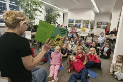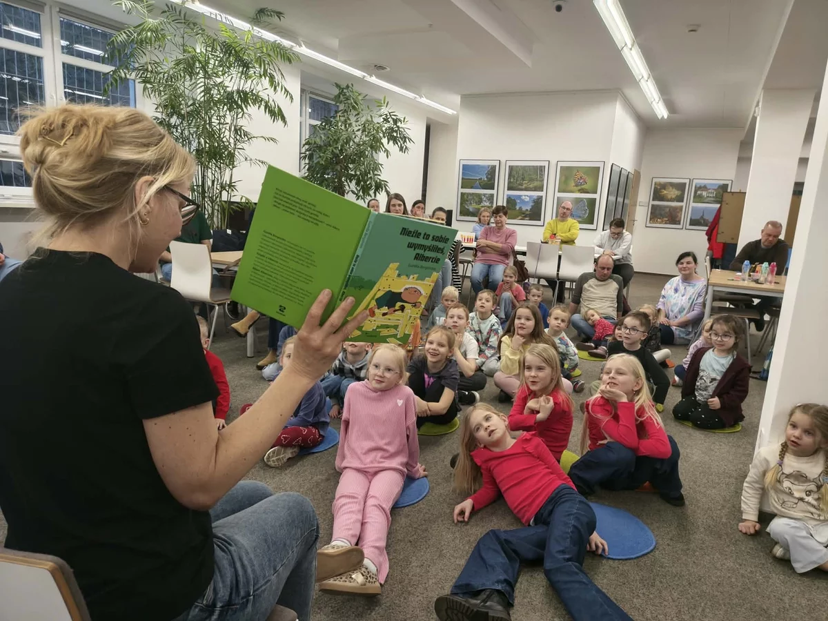 Tegoroczne ferie udało nam się zakończyć mocnym akcentem. 27 lutego gościem kościańskiej biblioteki była Beata Witoń, animatorka z poznańskiego Wydawnictwa Zakamarki. Dla grupy 25 dzieci dzieci w wieku od 4 do 8 lat przygotowała warsztaty oparte o postać Alberta Albertsona, pięcioletniego bohatera cyklu książek stworzonych przez szwedzką pisarkę i ilustratorkę Gunillę Bergstrom. Beata Witoń skupiła się zwłaszcza na części, w której Albert próbuje oderwać ojca znad gazety i zaprosić do wspólnej zabawy? Czy sobie poradził? Tego dowiedzieli się uczestnicy spotkania. Nieobecnych zaś zapraszamy do Oddziału dla Dzieci, gdzie czeka na Państwa zarówno tak, jak i pozostałe 22 części serii.