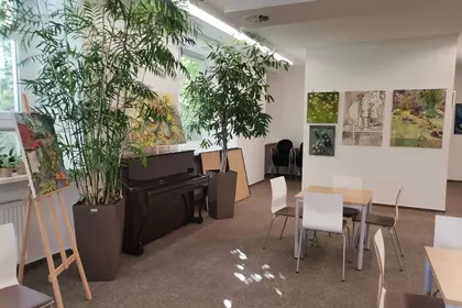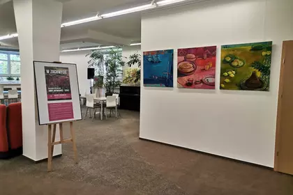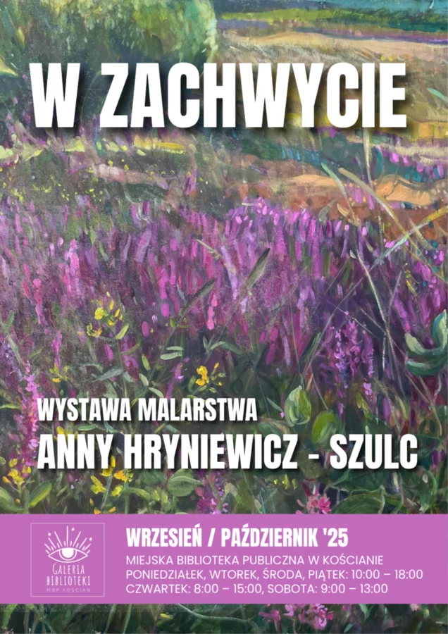 „W zachwycie” to czwarta wystawa utworzonej w maju galerii, która specjalizuje się w promowaniu twórców pochodzących lub tworzących na ziemi kościańskiej. Wcześniej prezentowano fotograficzne portrety autorstwa Anny Ryl i Zbyszka Warczoka oraz grafiki Roberta Gorczyńskiego. Wakacyjną wystawę poświecono twórczości Adama Tomaszewskiego, który od 20 lat jest patronem kościańskiej biblioteki.