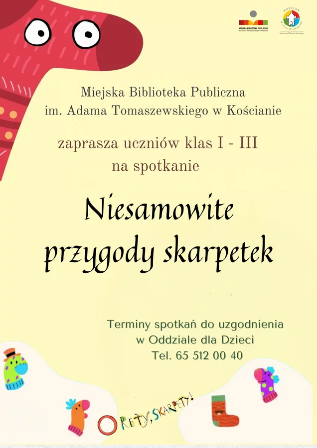 Klasy I-III szkół podstawowych serdecznie zapraszamy na zajęcia inspirowane cyklem książek Justyny Bednarek o niesamowitych przygodach dziesięciu skarpetek. Zainteresowane grupy można zgłaszać telefonicznie: 65 512 00 40.