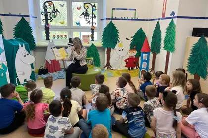 - Udział w ogólnopolskich akcjach np. Cała Polska czyta dzieciom - spotkania promujące czytanie razem z rodziną czy opiekunami.