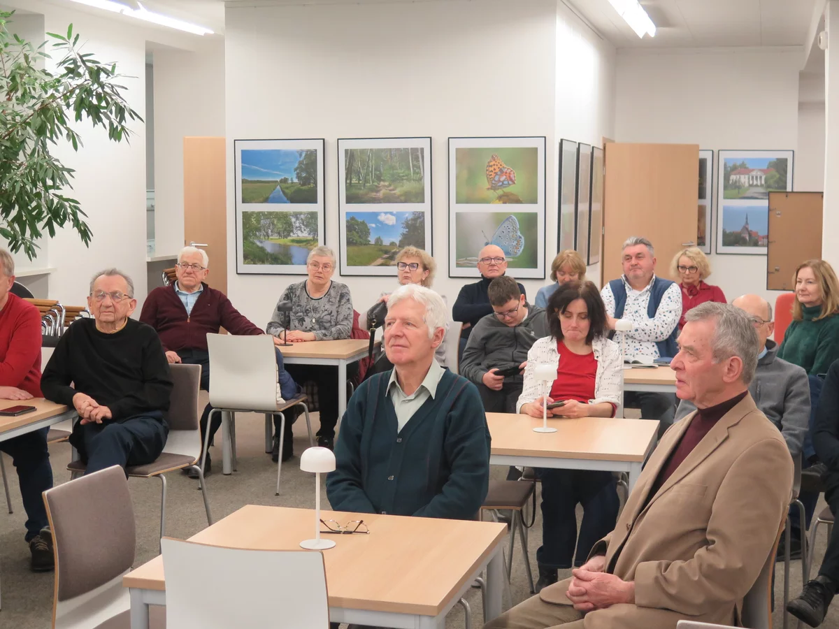 W drugiej części wykładu pan Jacek Olejniczak opowiedział o wystawie „Ziemia Kościańska. Odkryj swoją naturę”, która obecnie jest eksponowana w Galerii Biblioteki. Prelegent zaprezentował autorską prezentację, w której rozpoczął od wyjaśnienia pojęcia turystyki, następnie zarysował ogólną charakterystykę powiatu kościańskiego, by przejść do miejsc - jego zdaniem - szczególnie wartych odwiedzenia.