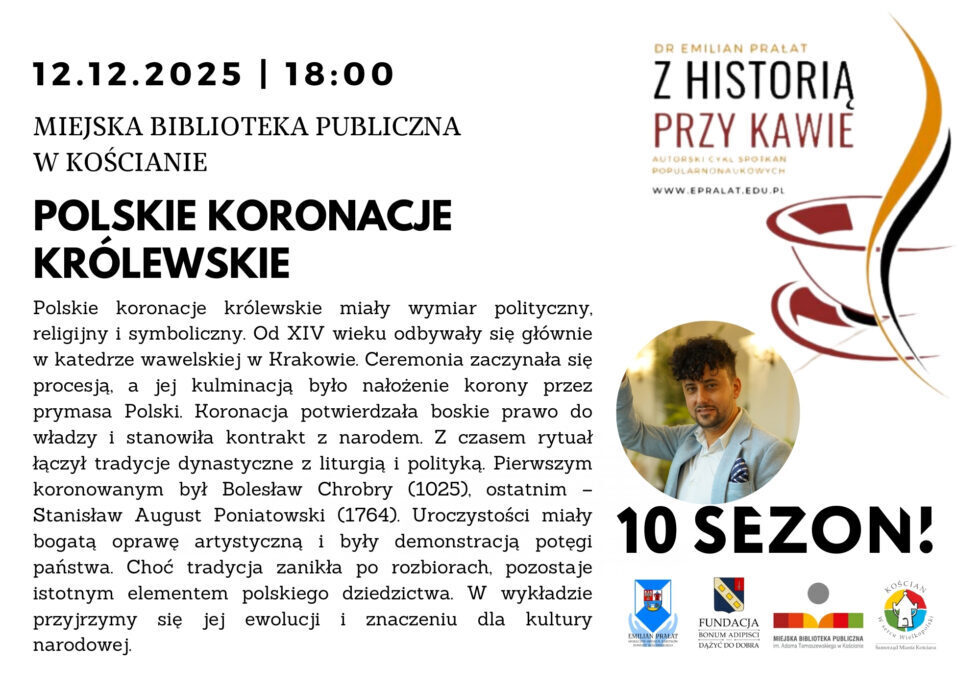 Zapraszamy na wykład dr. Emiliana Prałata poświęcony ewolucji i znaczenia koronacji dla kultury narodowej. Spotkanie odbędzie się 12 grudnia o godz. 18.00