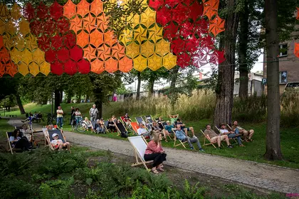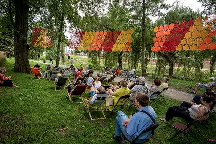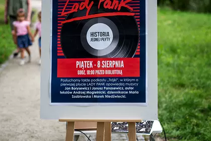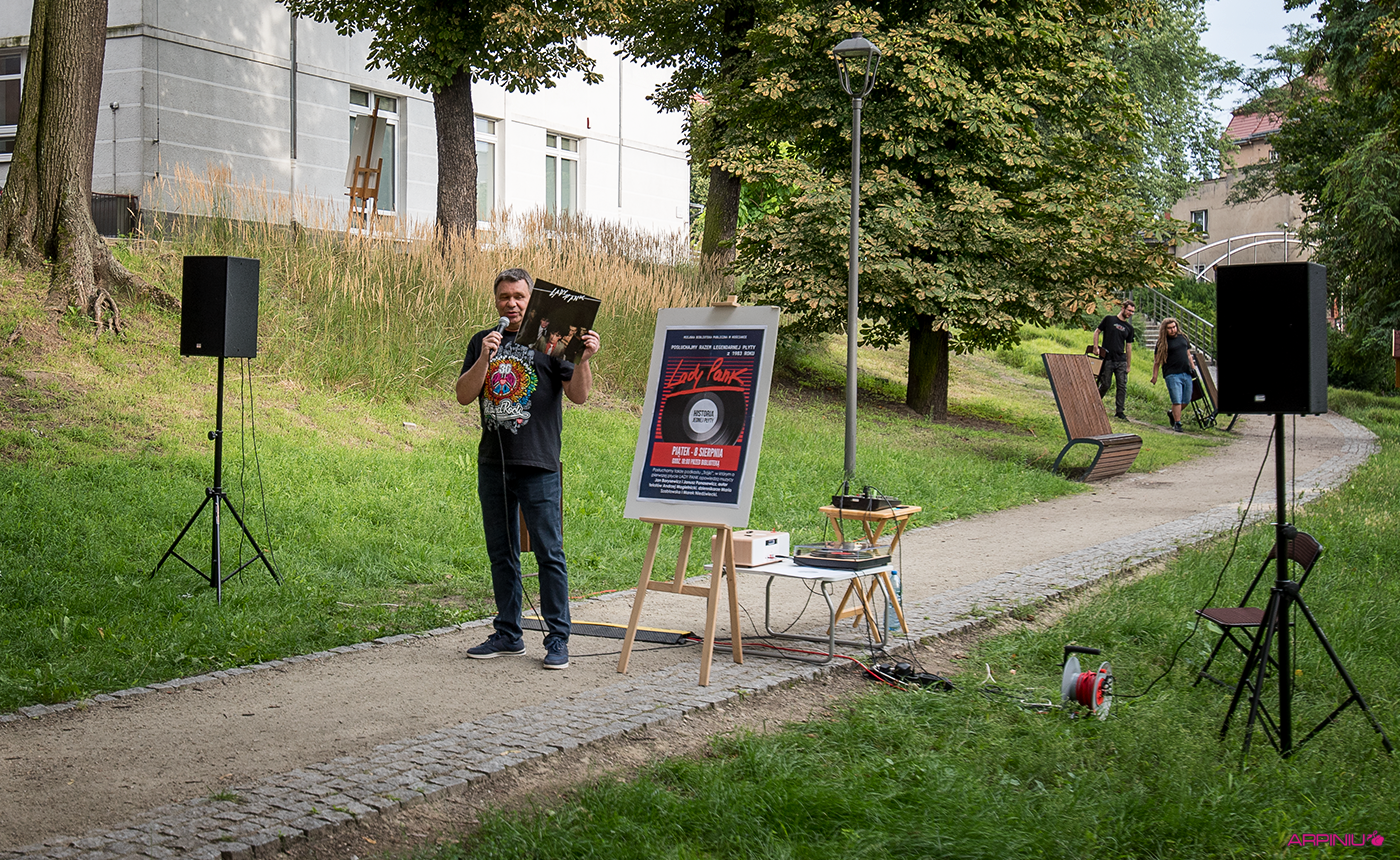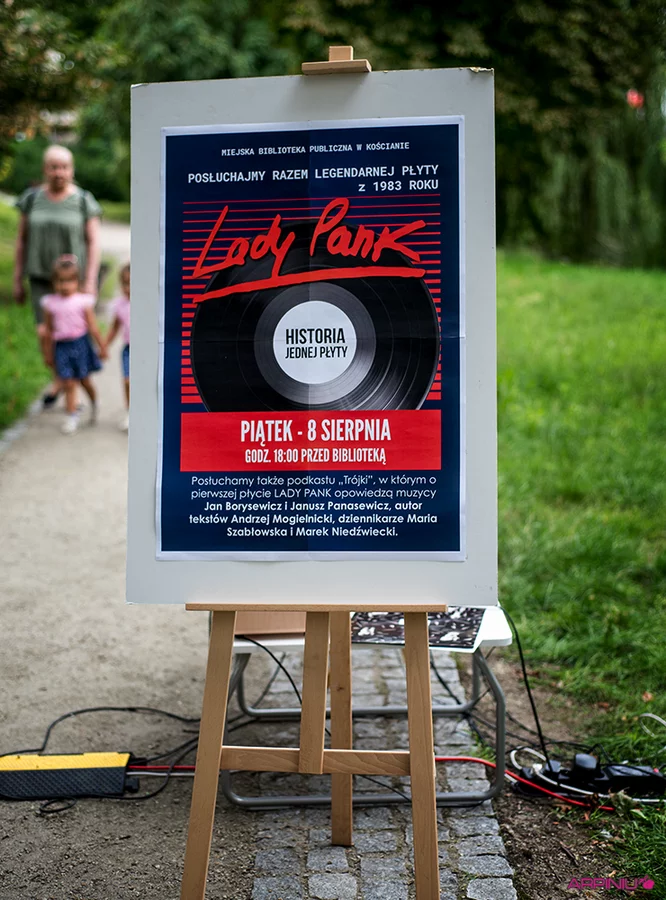 Spotkanie odbyło się na Wałach Żegockiego, w „sali koncertowej” pod dorodnymi drzewami i kolorową instalacją wykonaną z włóczki przez panie z grupy „Dzierganie w Kościanie”. W roli gospodarza wystąpił Paweł Sałacki, dyrektor biblioteki, który odtworzył audycję o początkach zespołu Lady Pank oraz debiutancki album grupy.